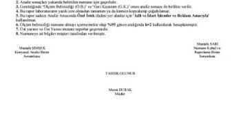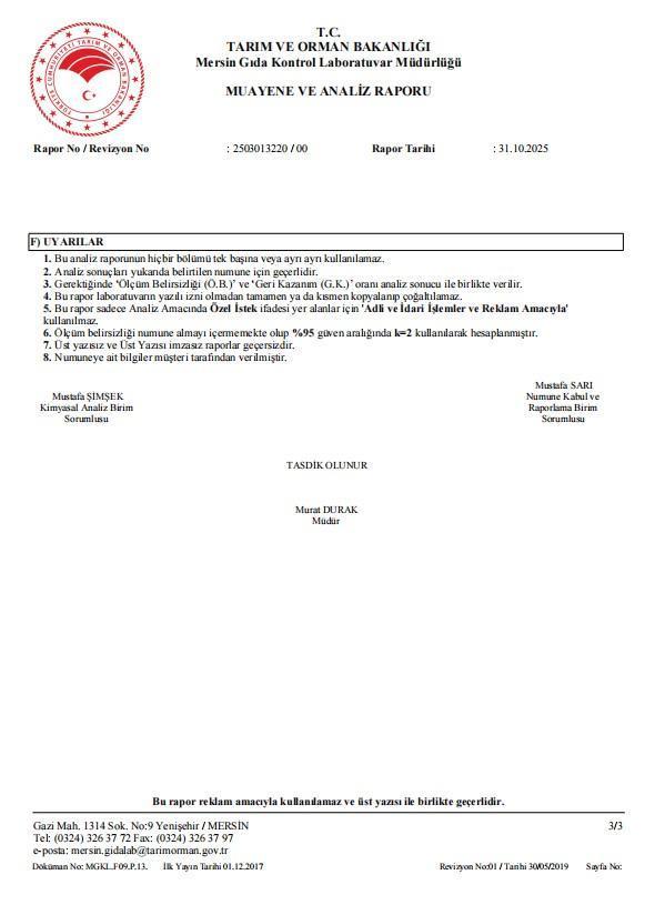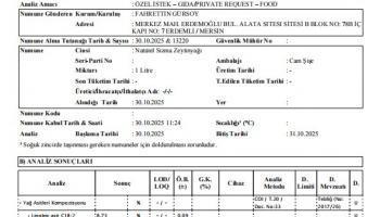 Analizi Yapan Kurum: Mersin Gıda Kontrol Laboratuvar Müdürlüğü